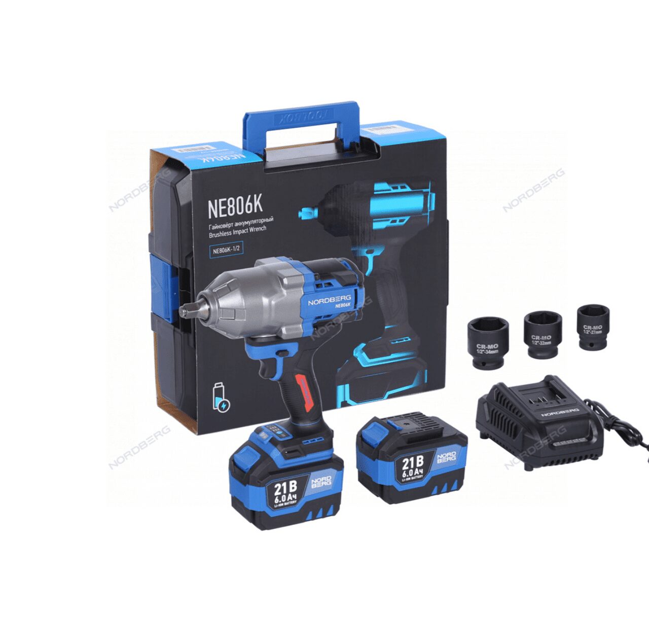 Гайковерт аккумуляторный, 1/2″, 21В, 1500 Нм с двумя 6A аккумуляторами. и зарядным устройством, в кейсе
