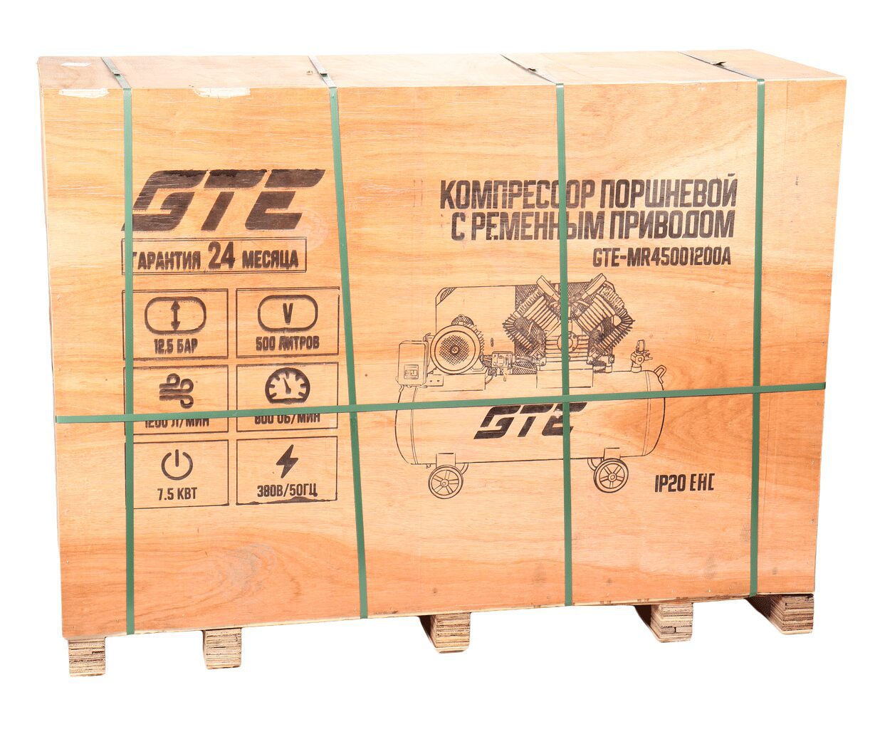 Компрессор поршневой с ременным приводом 380В, ресивер 500л, 1200л/мин.