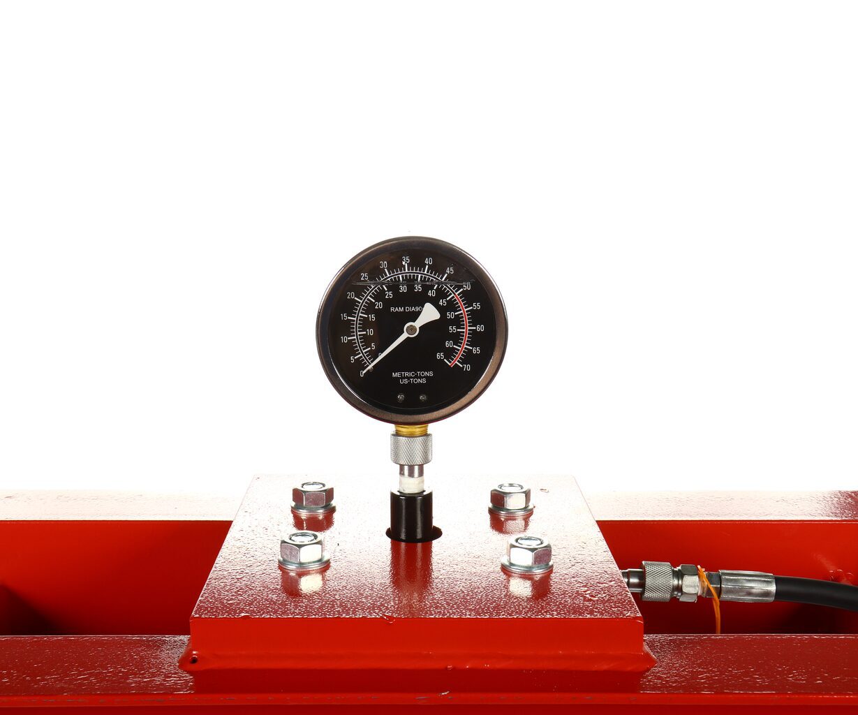 - Пресс снабжен виброустойчивым глицериновым манометром для контроля давления штока.