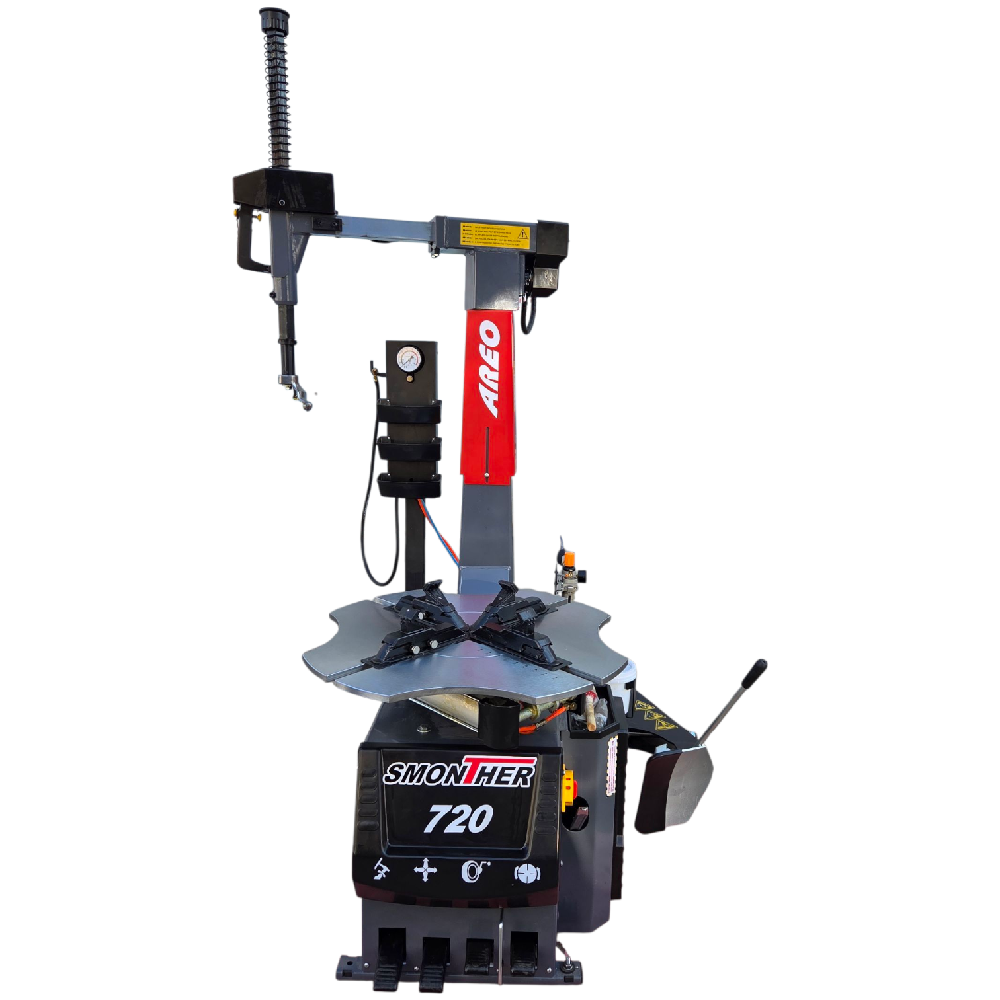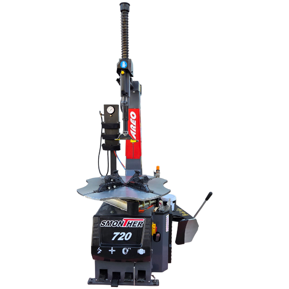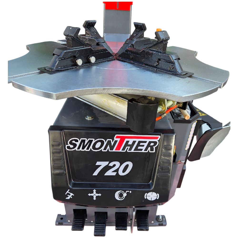 Консоль с автоматическим приводом поворота для экономии пространства. Вращение рабочего стола по часовой стрелке и в противоположном направлении. . Встроенная колонка для накачки шин с манометром и полочками для хранения инструмента и ниппелей. Лопатка не повреждает диск при отрыве покрышки от диска. Новая система блокировки штока, быстрая замена рабочей головки с металлической на пластиковую (2 шт. в комплекте), пластиковые карманы слева и спереди для хранения инструмента. Подкачка педалью, карман для документации.