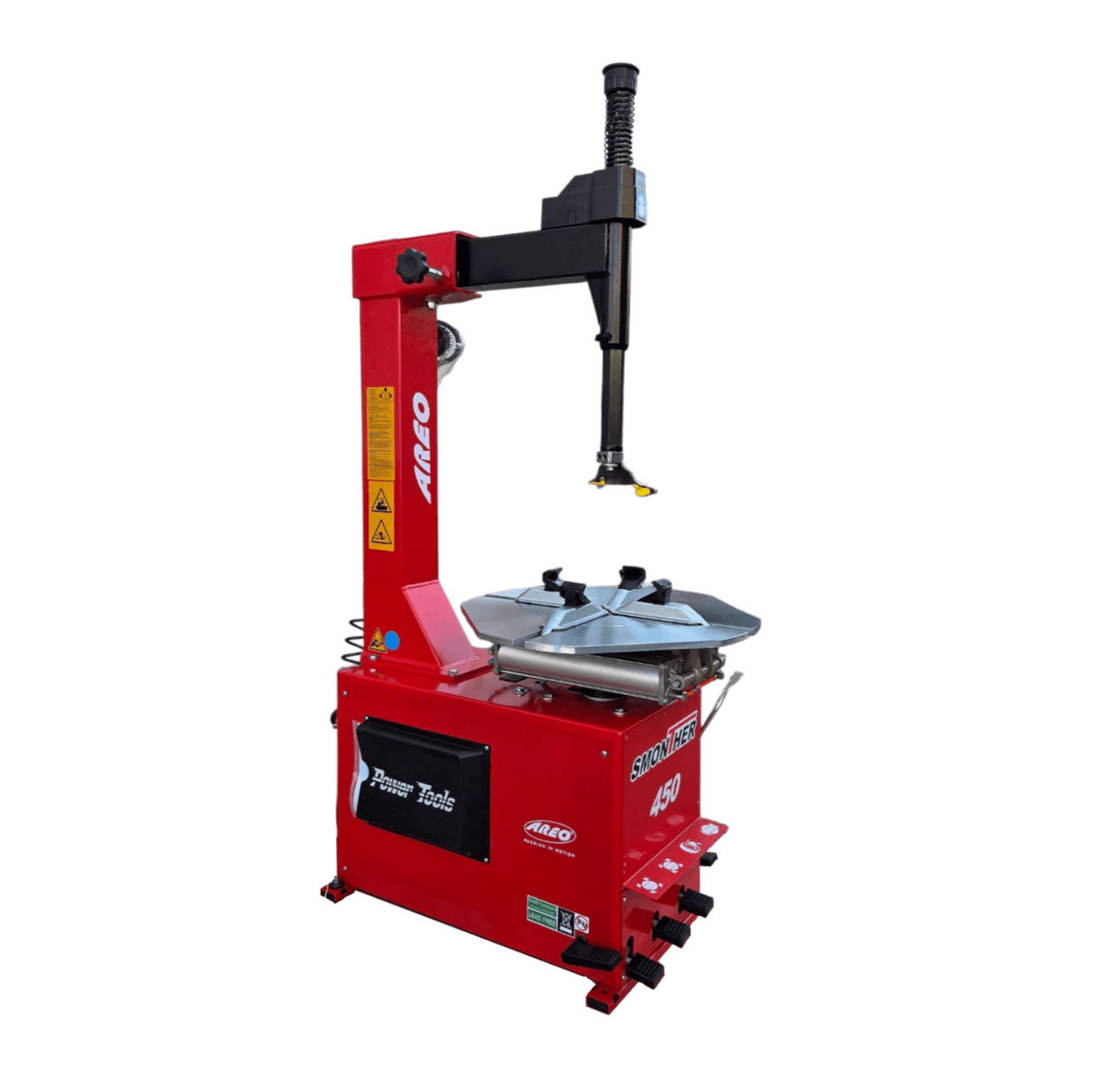 Специальная разработка для небольших мастерских. Уникальность стенда во встроенной системе ADAPTIVE MOUNTING HEAD SYSTEM, запатентованной разработке AREO. AMH System – система настраиваемой фиксации монтажной головки специальной ручкой.