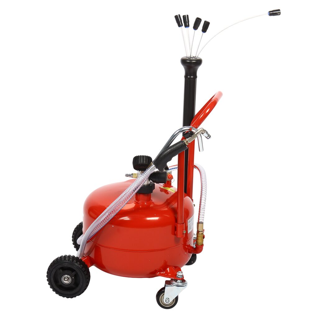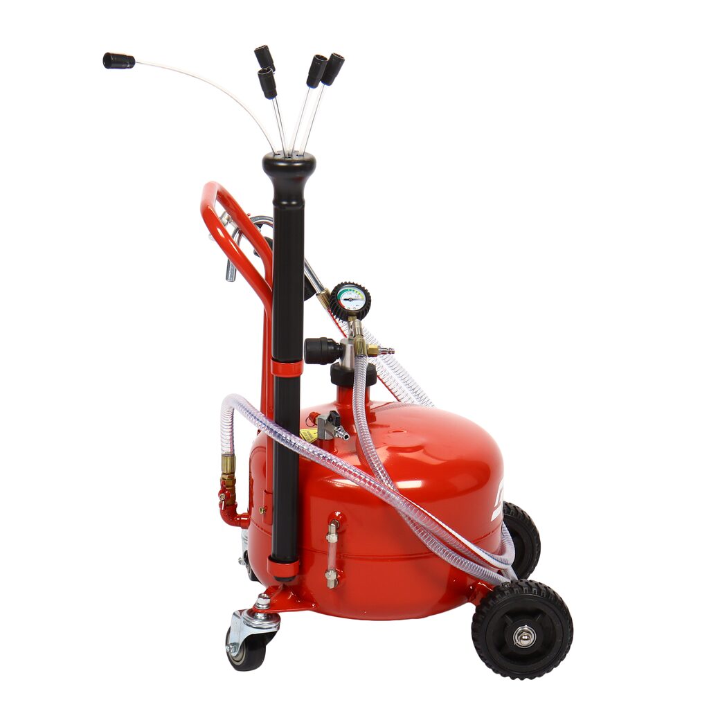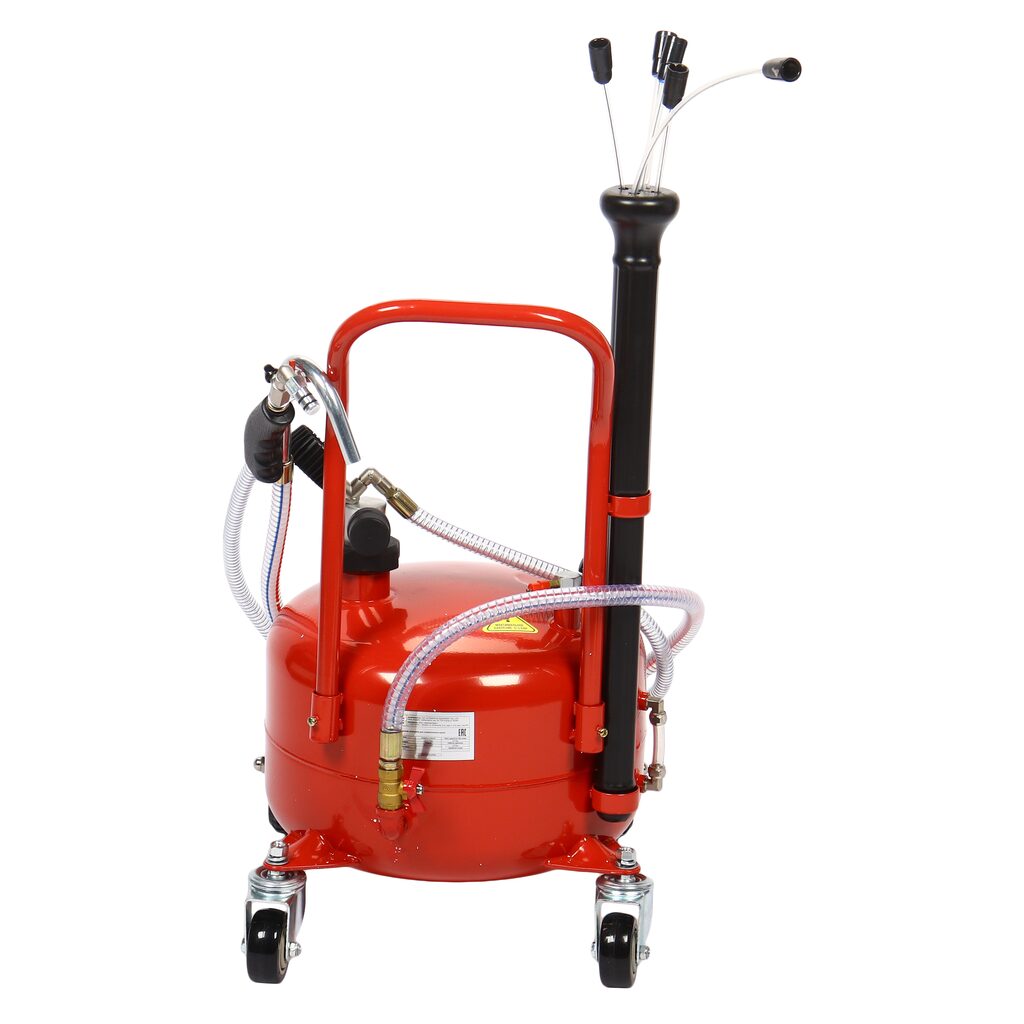 Мобильная пневматическая установка для откачки масла емкостью бака 25 литров. Подходит для быстрой замены моторного или трансмиссионного масла любого автомобиля.