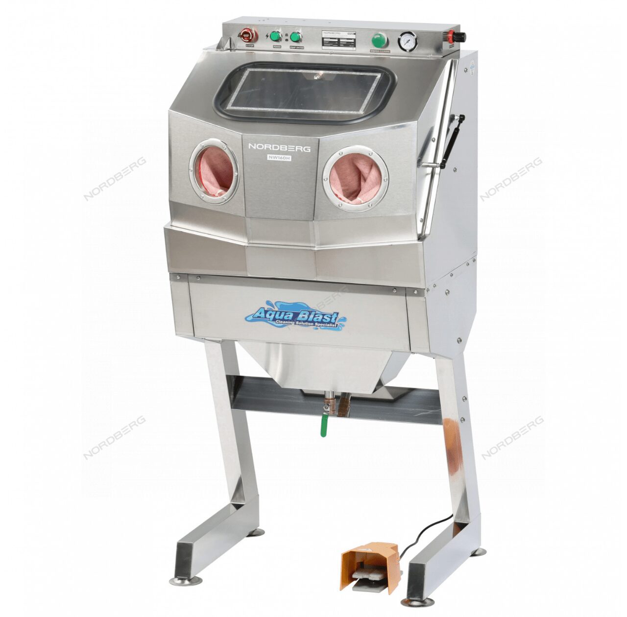 — Вода с мелкой фракцией стеклянной дроби — абразивная обработка для удаления стойких загрязнений, окалин и старых покрытий, обеспечивающая финишную чистоту поверхности; - Прочная конструкция из нержавеющей стали (толщина 1,2 мм) — устойчива к влаге, коррозии и химическим веществам;